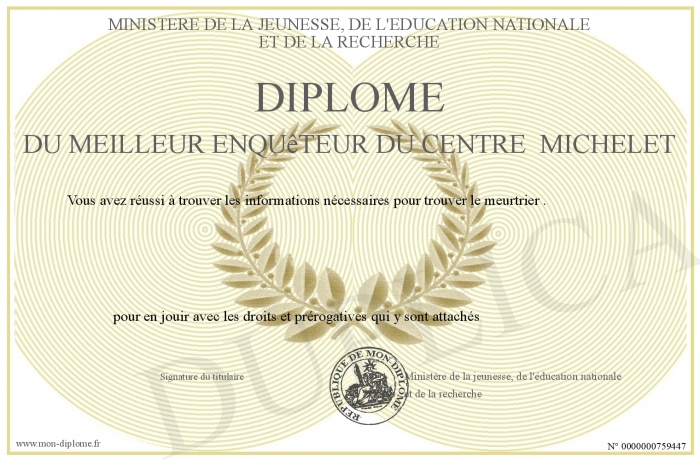 Envoyez par email votre Diplôme du meilleur enquêteur du centre Michelet personalisé