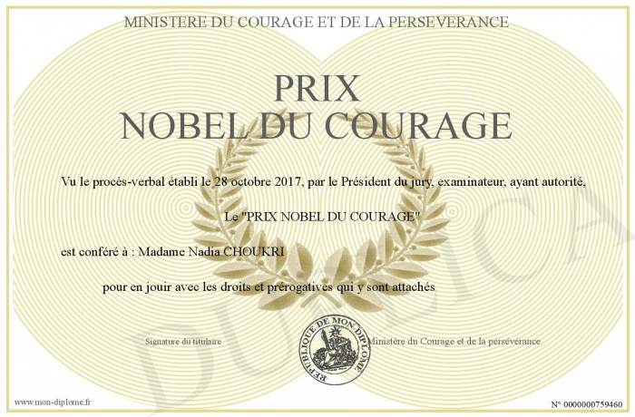 Envoyez par email votre PRIX NOBEL DU COURAGE personalisé