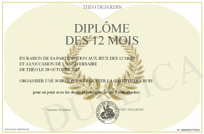 Envoyez par email votre DIPLÔME DES 12 MOIS personalisé