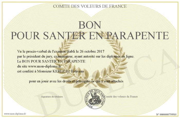 Envoyez par email votre BON POUR SANTER EN PARAPENTE personalisé