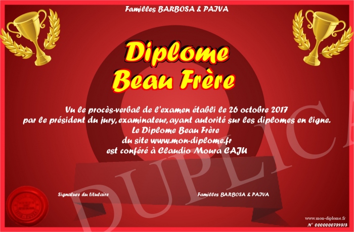 Envoyez par email votre Diplôme Beau Frère personalisé