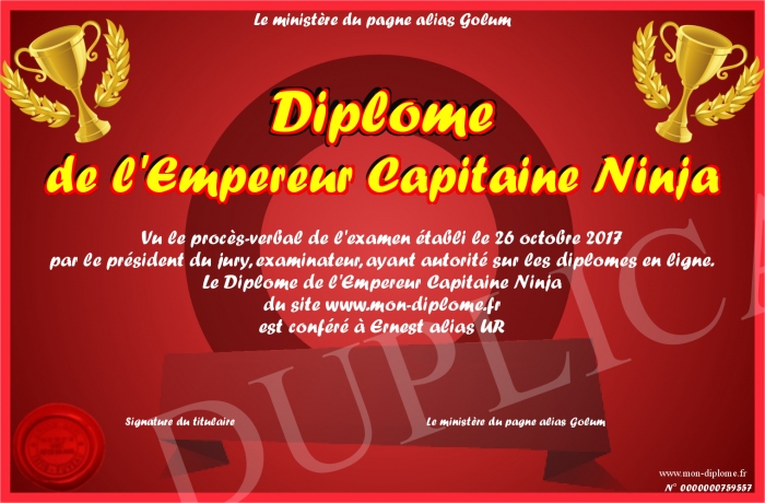 Envoyez par email votre Diplôme de l'Empereur Capitaine Ninja personalisé