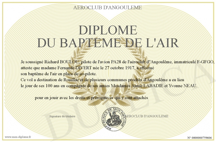 Envoyez par email votre Diplôme du bapteme de l'air personalisé