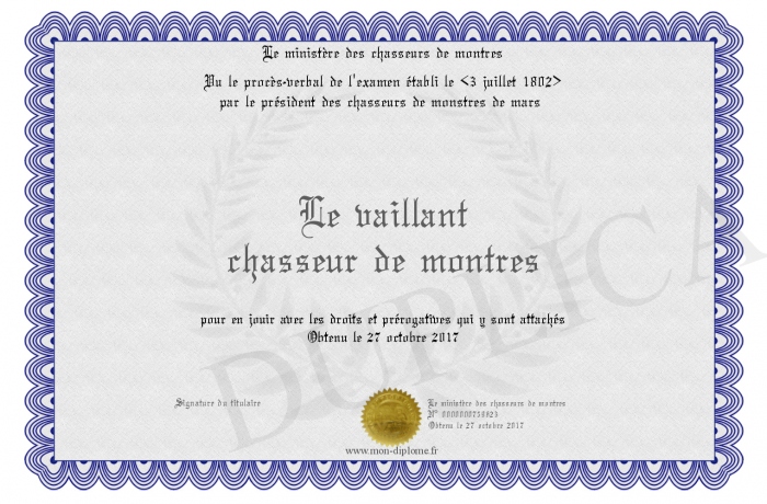 Envoyez par email votre Le vaillant chasseur de montres personalisé