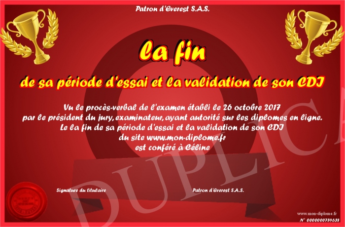 Envoyez par email votre la fin de sa période d'essai et la validation de son CDI personalisé