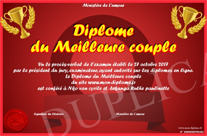 Envoyez par email votre Diplôme du Meilleure couple personalisé