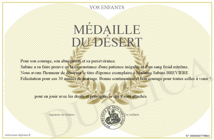 Envoyez par email votre MÉDAILLE DU DÉSERT personalisé