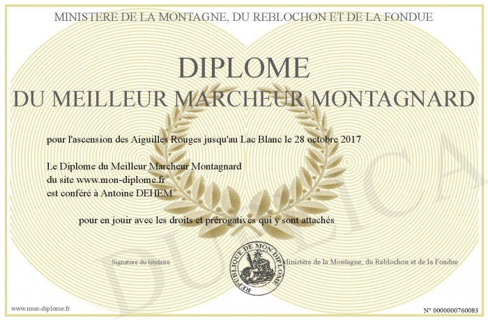 Envoyez par email votre Diplôme du Meilleur Marcheur Montagnard personalisé