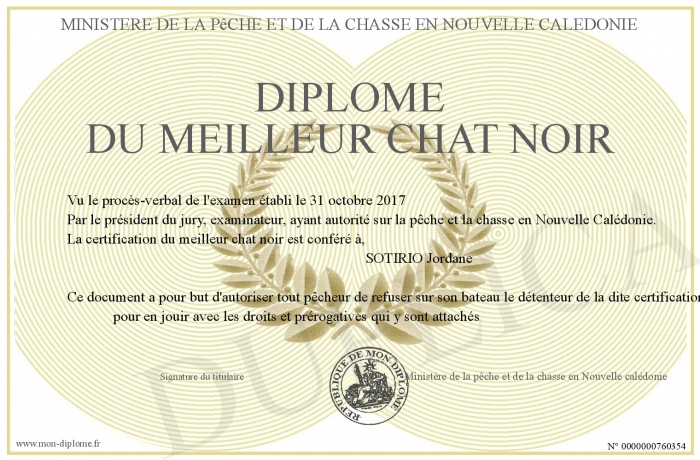 Envoyez par email votre Diplôme du meilleur chat noir personalisé