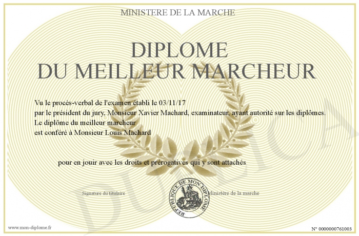 Envoyez par email votre Diplôme du meilleur marcheur personalisé