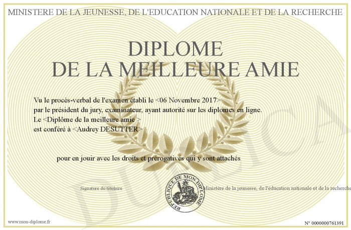 Envoyez par email votre Diplôme de la meilleure amie personalisé
