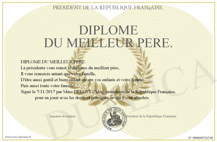 Envoyez par email votre Diplôme du meilleur père. personalisé