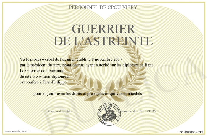 Envoyez par email votre Guerrier de l'Astreinte personalisé