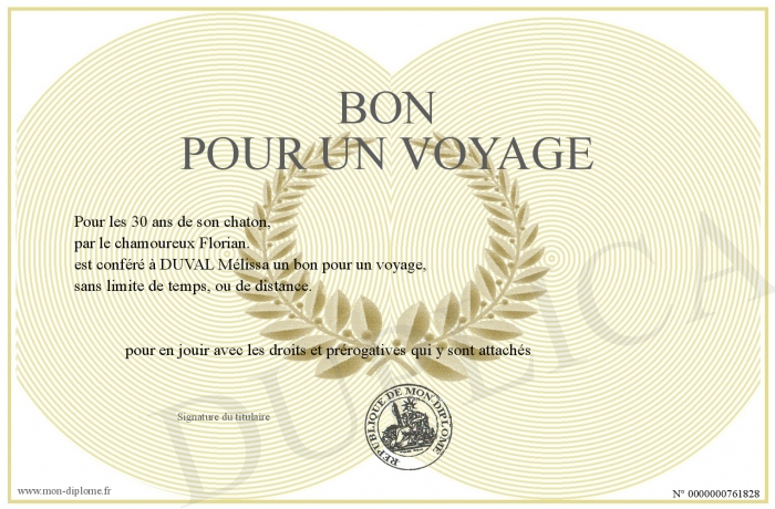 Envoyez par email votre BON POUR UN VOYAGE personalisé
