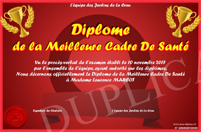 Envoyez par email votre Diplôme de la Meilleure Cadre De Santé personalisé