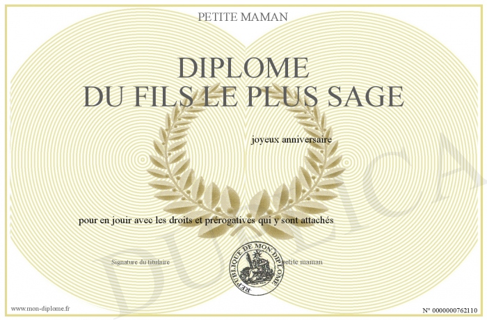 Envoyez par email votre Diplôme du fils le plus sage personalisé