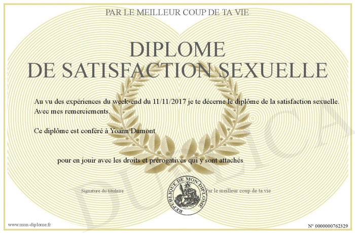 Envoyez par email votre Diplôme de satisfaction sexuelle personalisé