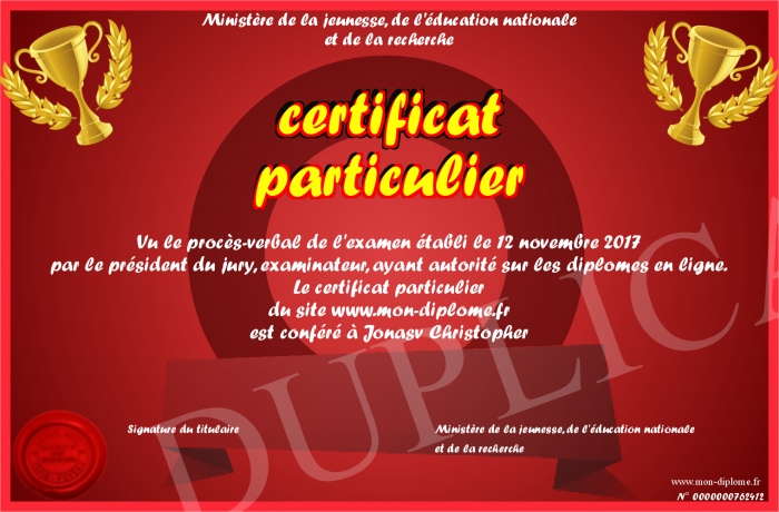 Envoyez par email votre certificat particulier personalisé