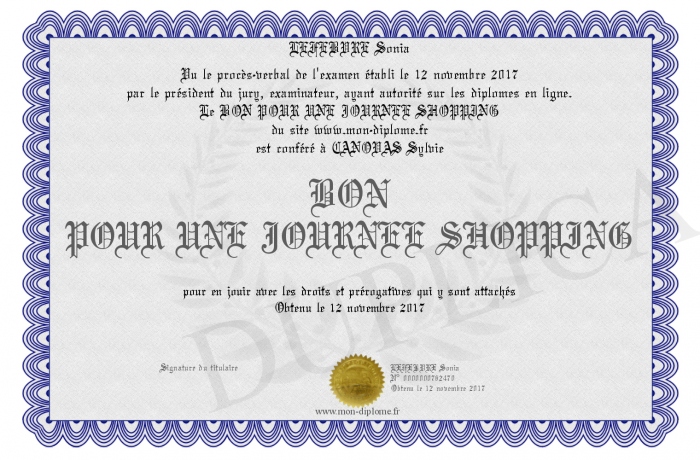 Envoyez par email votre BON POUR UNE JOURNEE SHOPPING personalisé