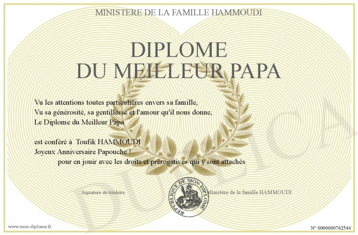Envoyez par email votre Diplôme du Meilleur Papa personalisé