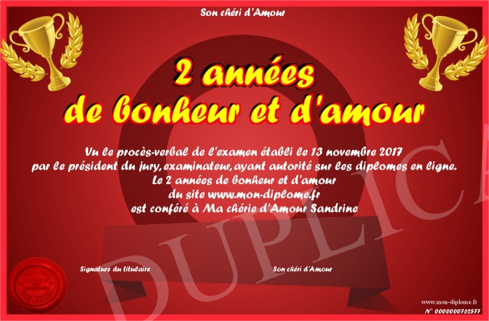 Envoyez par email votre 2 années de bonheur et d'amour personalisé