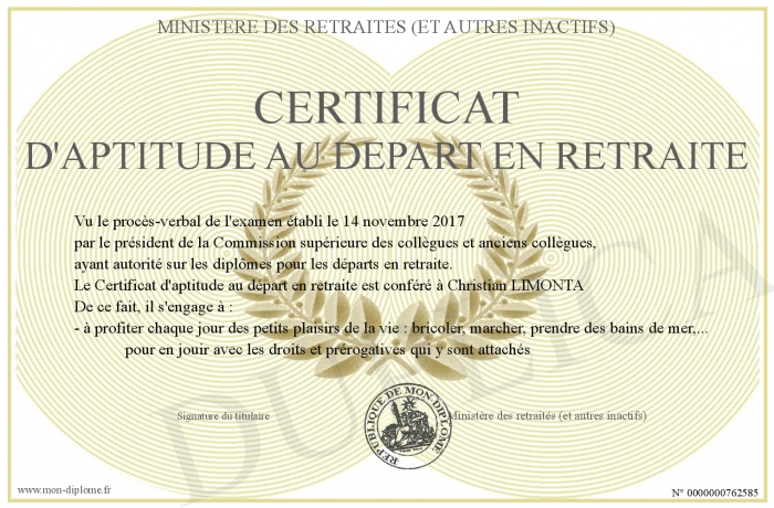 Envoyez par email votre Certificat d'aptitude au départ en retraite personalisé