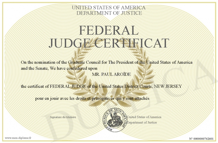 Envoyez par email votre FEDERAL JUDGE CERTIFICAT personalisé