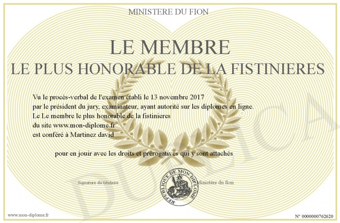 Envoyez par email votre Le membre le plus honorable de la fistinieres personalisé