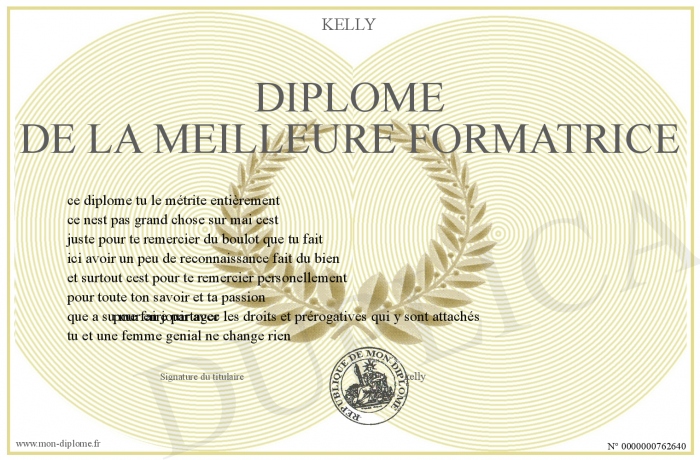 Envoyez par email votre Diplôme de la meilleure formatrice personalisé