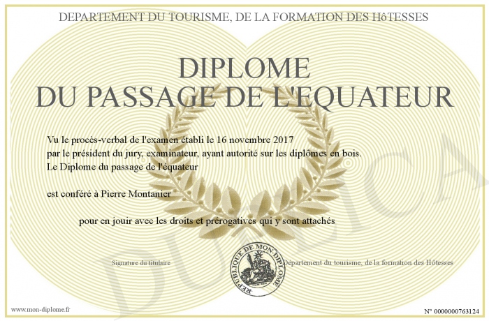 Envoyez par email votre Diplôme du passage de l'équateur personalisé