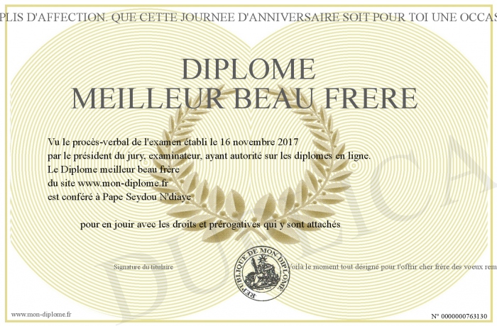 Envoyez par email votre Diplôme meilleur beau frère personalisé