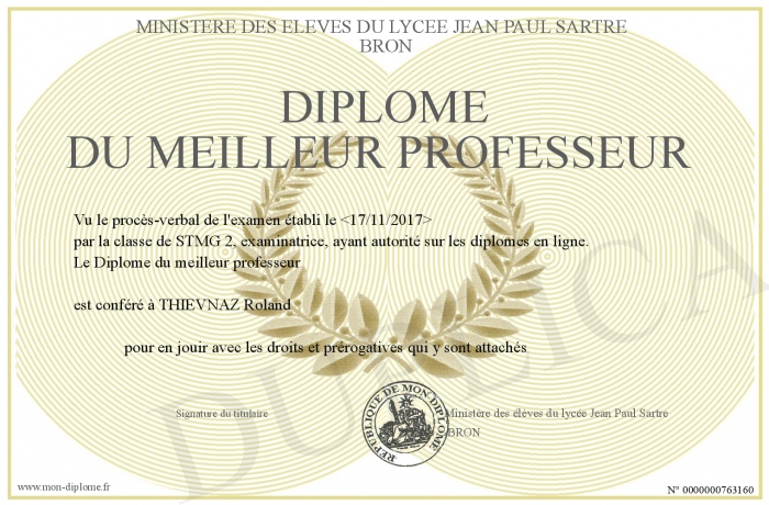 Envoyez par email votre Diplôme du meilleur professeur personalisé