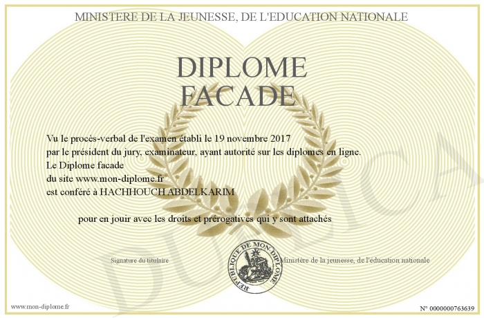 Envoyez par email votre Diplôme facade personalisé