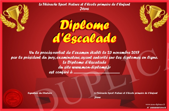 Envoyez par email votre Diplôme d'Escalade personalisé