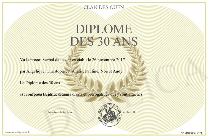 Envoyez par email votre Diplôme des 30 ans personalisé