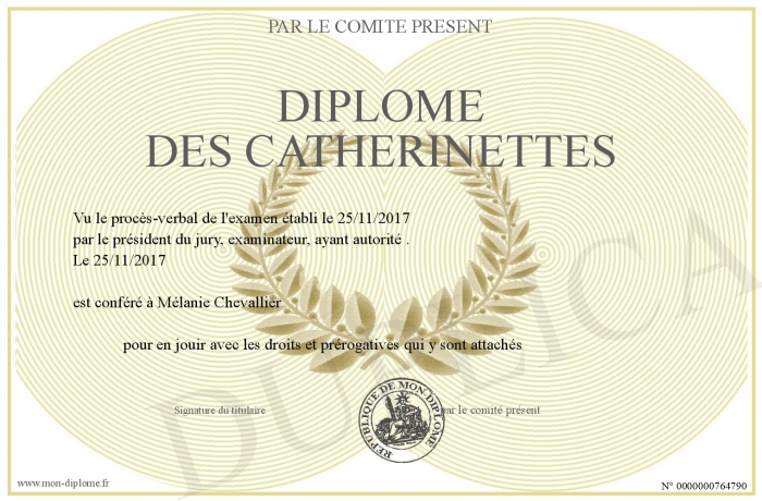 Envoyez par email votre Diplôme des catherinettes personalisé