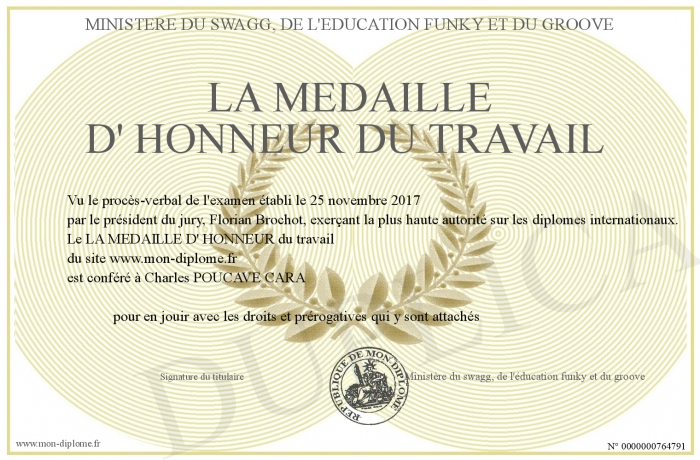 Envoyez par email votre LA MEDAILLE D' HONNEUR du travail personalisé