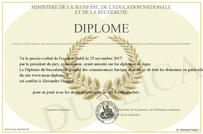 Envoyez par email votre Diplôme du baccalaureat général des connaissances basique et avancés de tout les domaines en particuliers professionnels de l'informatique basique, avancée et experte personalisé