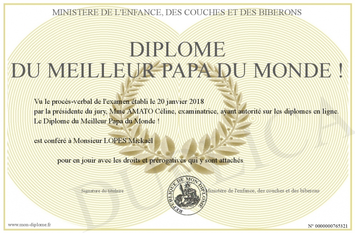Envoyez par email votre Diplôme du Meilleur Papa du Monde ! personalisé