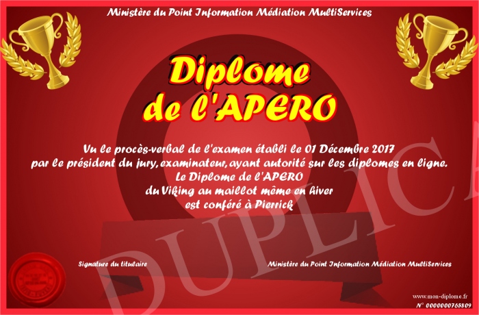 Envoyez par email votre Diplôme de l'APERO personalisé
