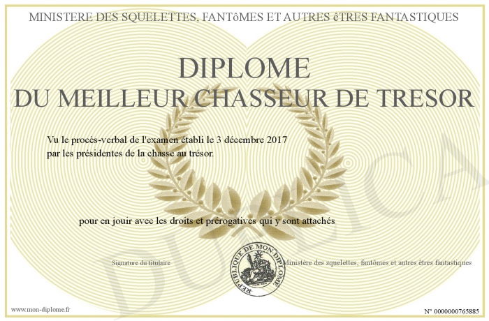 Envoyez par email votre Diplôme du meilleur chasseur de trésor personalisé