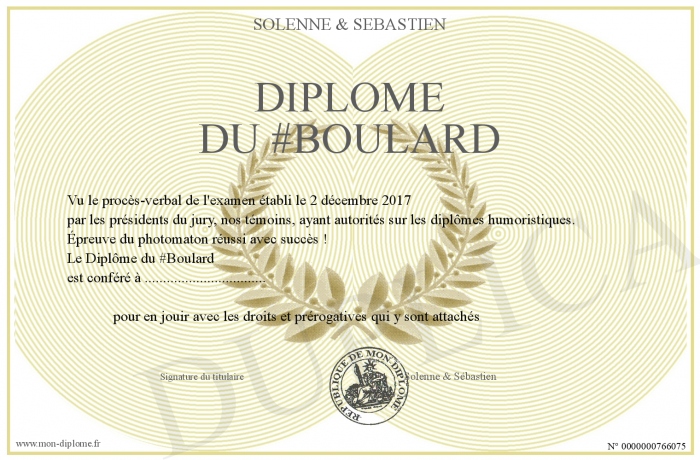 Envoyez par email votre Diplôme du #Boulard personalisé