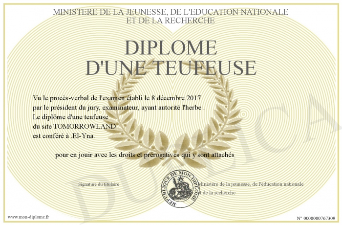 Envoyez par email votre Diplôme d'une teufeuse personalisé