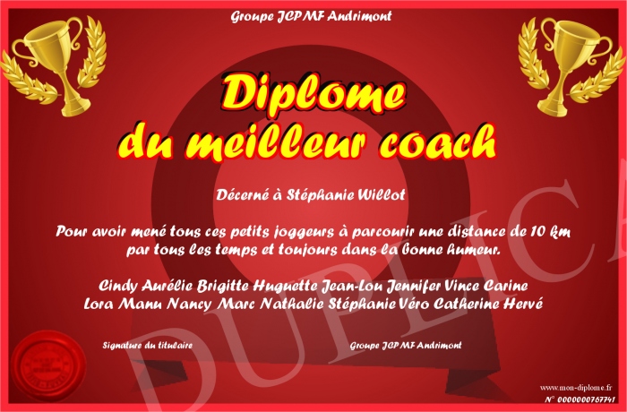 Envoyez par email votre Diplôme du meilleur coach personalisé
