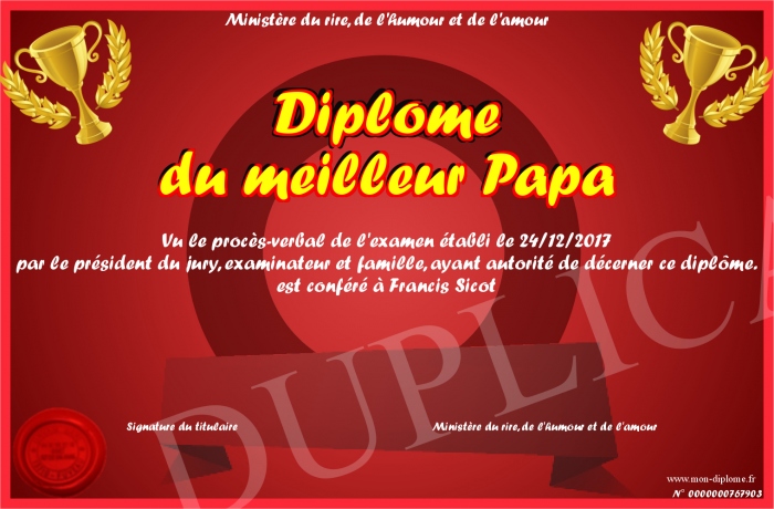 Envoyez par email votre Diplome du meilleur Papa personalisé