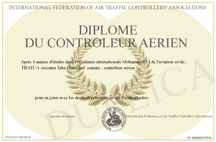 Envoyez par email votre Diplôme du contrôleur aérien personalisé