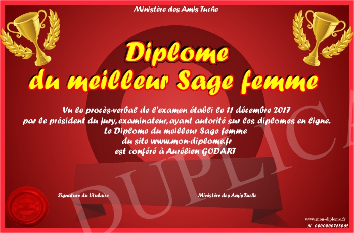 Envoyez par email votre Diplôme du meilleur Sage femme personalisé