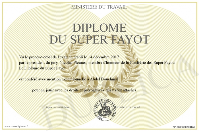 Envoyez par email votre Diplôme du Super Fayot personalisé