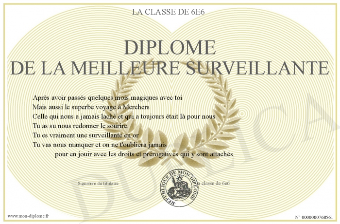 Envoyez par email votre diplome de la meilleure surveillante personalisé