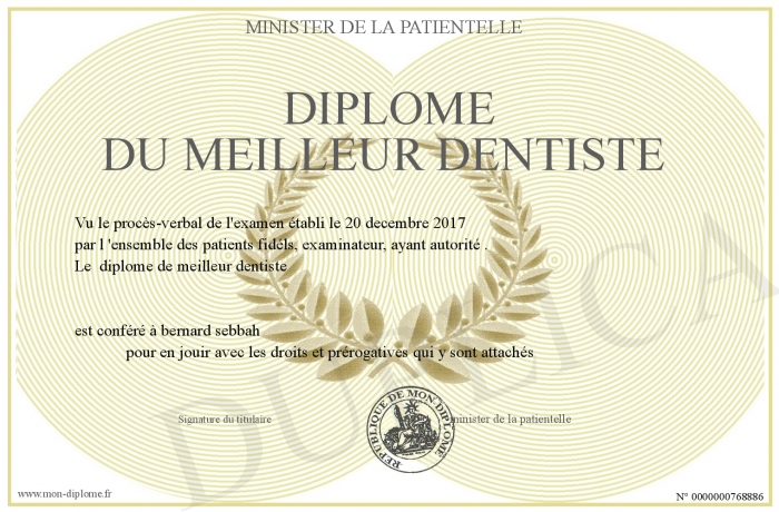 Envoyez par email votre diplome du meilleur dentiste personalisé